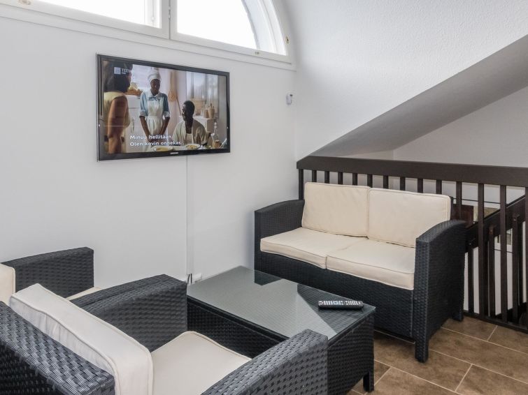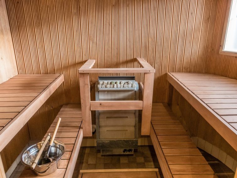 On the second floor, 4 bedrooms, with 2 beds in each, lounge and TV area, sauna, washroom and 2 separate WC.