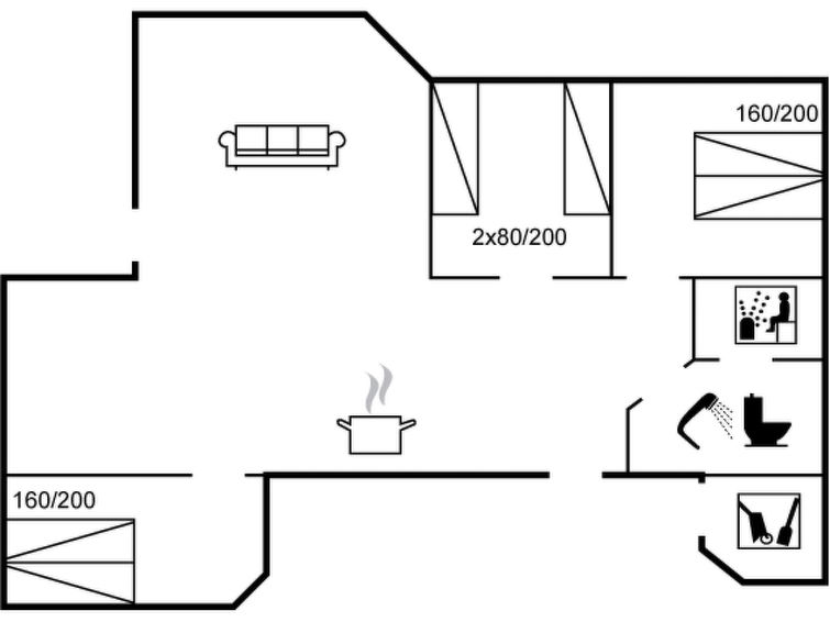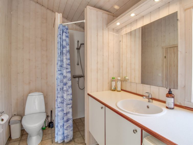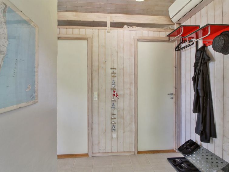 Enmannsbolig, bygget i 2002. 120 m fra sjøen. Privat: uberørt tomt 1'200 m2. Utendørs dusj, terrasse (80 m2). I huset: badstu, vaskemaskin. Parkering ved hbrukt. Daglivarehandel 5 km. Eieren godtar ikke noen ungdomsgrupper.