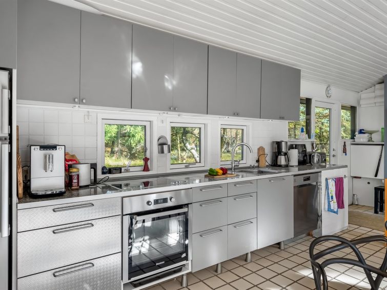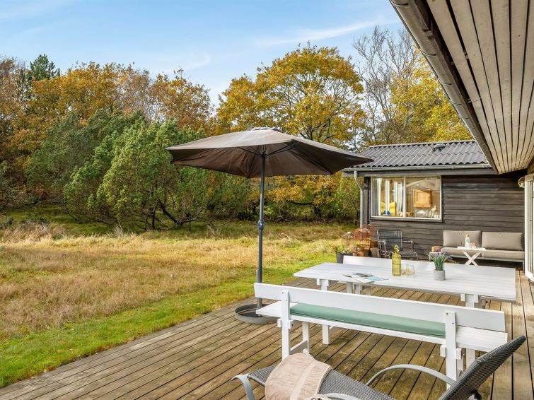 "Linnea" - 1km from the sea in Western Jutland", 4 rom hus 90 m2. Passer for 6 voksne. Stue med, TV, video, radio, CD-spiller og DVD. 1 rom med, 2 sovesoffaer. 1 rom med, 1 sovemulighet. 1 rom med, 1 sovemulighet. 1 rom med, 1 dobbeltseng. Kjøkken (4 kokeplater, stekeovn, oppvaskmaskin, mikrobølgeovn, frys). Dusj/WC. Fasiliteter: høy barnestol. Internett (DSL/LAN trådløs LAN [WLAN]). Max kjæledyr / hund tillatt 1 kjæledyr / hund tillatt.