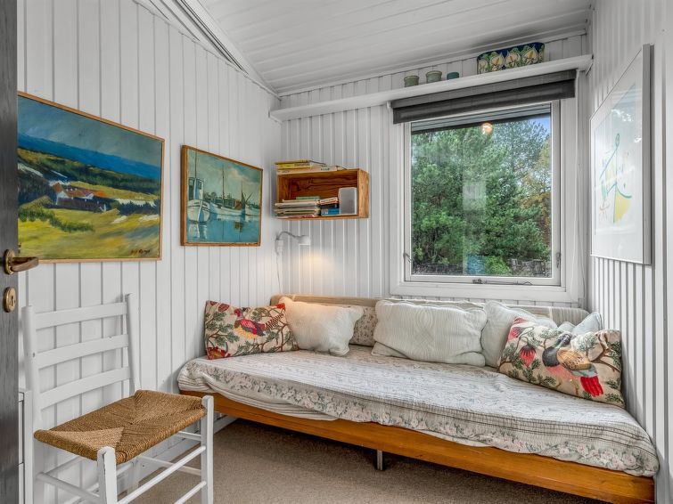 Enmannsbolig, bygget i 1967. 1 km fra sjøen. Privat: uberørt tomt 2'500 m2. Lekeplass (huske). I huset: vaskemaskin. Parkering ved hbrukt. Daglivarehandel 1.5 km.