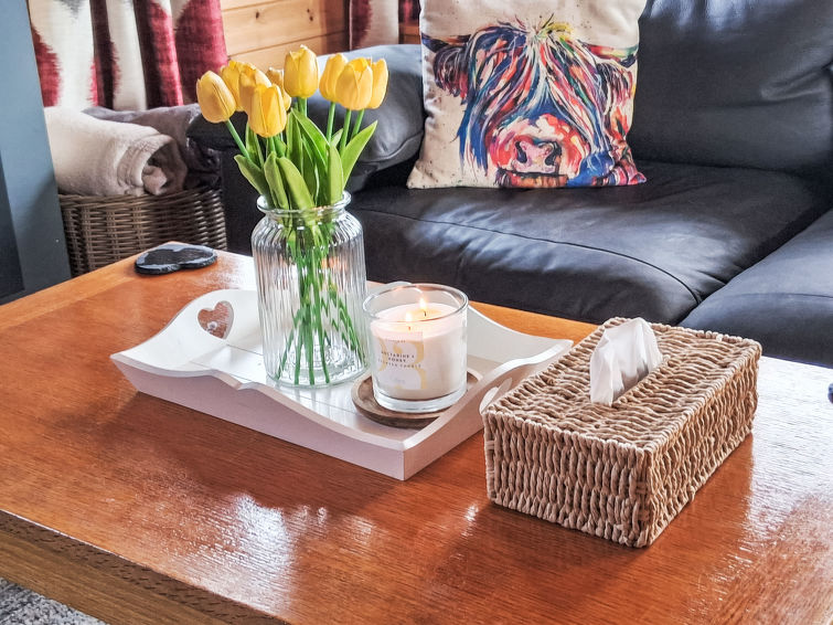 Loch Leven: Meget komfortabel hytte "Loch Leven Lodge 12". I en roligt posisjon, 100 m fra innsjø. I anlegget: restaurant, trådløst LAN [WLAN]. Parkering (for 2 biler) ved hbrukt. Attraksjoner i nærheten: Kinross, Perth, Edinburgh. Velkjente innsjøer: Loch Leven. Vennligst merk: Av- og pålastning av bagasje er mulig ved feriebol.