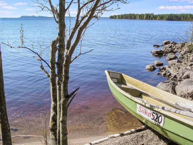 118 km to the north of Joensuu, 20 km to the west of Lieksa. Lake Pielinen 30 m (871,2 km2), West facing shore with sandy bottom, own shore, own rowing boat. Log cabin 1996, living room with convertible sofa, kitchen, bedroom with double bed, sleeping gallery (16 m2) with 3 mattresses, terrace, balcony, separate wood-heated sauna. A cozy holiday cottage for a small family in a good fishing and boating area. Reservations start at 16.00 and end at 12.00 (also in weekend bookings). Final cleaning cost will be added to the price.