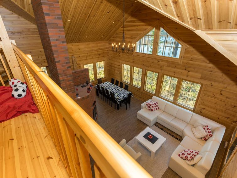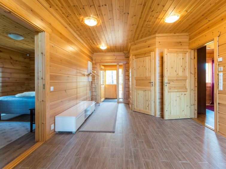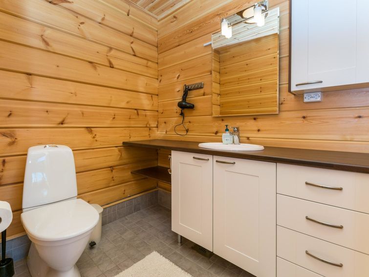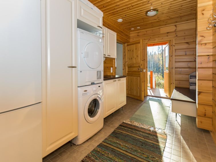 Spacious two-story log house 2014. Ground floor: living room, kitchen, hall, vestibule, technical area, separate toilet, bedroom with double bed (from the bedroom entrance to the terrace), bedroom 2 beds, utility room (where dryer, another fridge and freezer), shower room, sauna (electric stove), terrace.