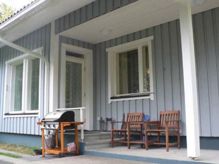 70 km north-west of Lahti, Lake Vesijako 25 m, shallow, hard sanded silt bottom, own boat. Wooden cottage 2008, living room/kitchen 2 extra beds, 2 bedrooms each with 2 beds, attic with 4 mattresses (only for summer use), dressing room, washroom, sauna. Back part of plot level; from cottage to shore a gentle slope. Yard has sand, grass and forest.
