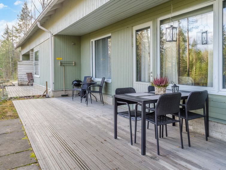 77 km north of Joensuu, Pond Käränkälampi 180 m (length 2 km, width 1,5 km). Wooden row house flat, renovated 1990, sauna renovated 2008, kitchen-living room with convertible sofa, bedroom with 2 beds, small bed room with 2 beds, washroom, sauna (elec. stove), small terrace. Cozy row house apartment in Loma-Koli cottage area. Distance to the common beach by pond Käränkälampi 180 m. The apartment is situated near the skiing tracks, distance to the illuminated track is only 50 m. The flat is suitable for downhill and cross-country skiers; Ukko-Koli slopes 9 km. Reservations start at 16.00 and end at 12.00 ( also in weekend bookings).
