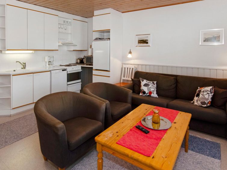 77 km north of Joensuu, Pond Käränkälampi 180 m (length 2 km, width 1,5 km). Wooden row house flat, renovated 1990, kitchen-living room, bedroom with double bed, small bed room with 2 beds, washroom, sauna (elec. stove), small terrace. Cozy row house apartment in Loma-Koli cottage area. Distance to the common beach by pond Käränkälampi 180 m. The flat is situated near skiing tracks, distance to the illuminated track only 50 m. The flat is suitable for downhill and cross-country skiers; Ukko-Koli slopes 9 km. Reservations start at 16.00 and end at 12.00 (also in weekend bookings). Final cleaning cost will be added to the price.