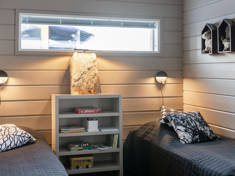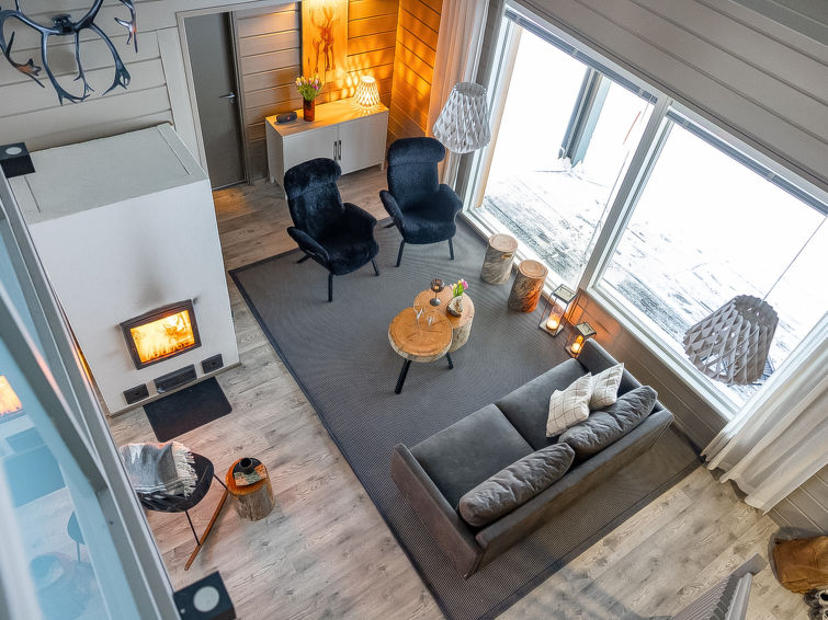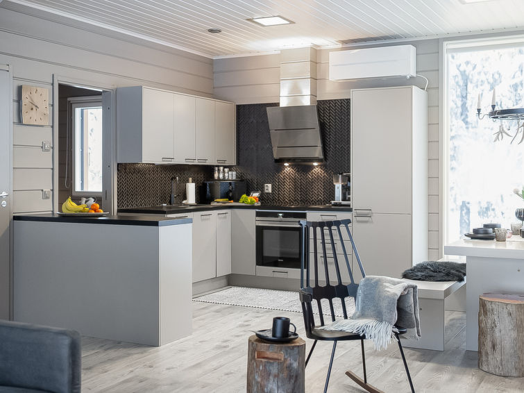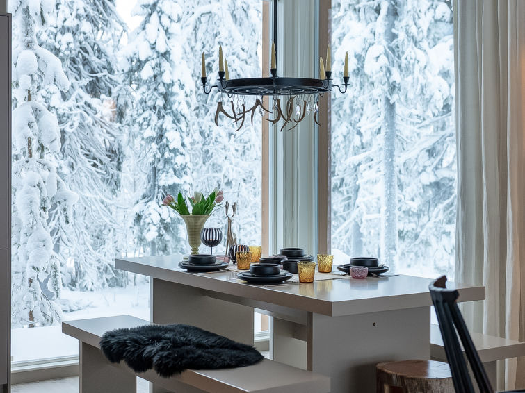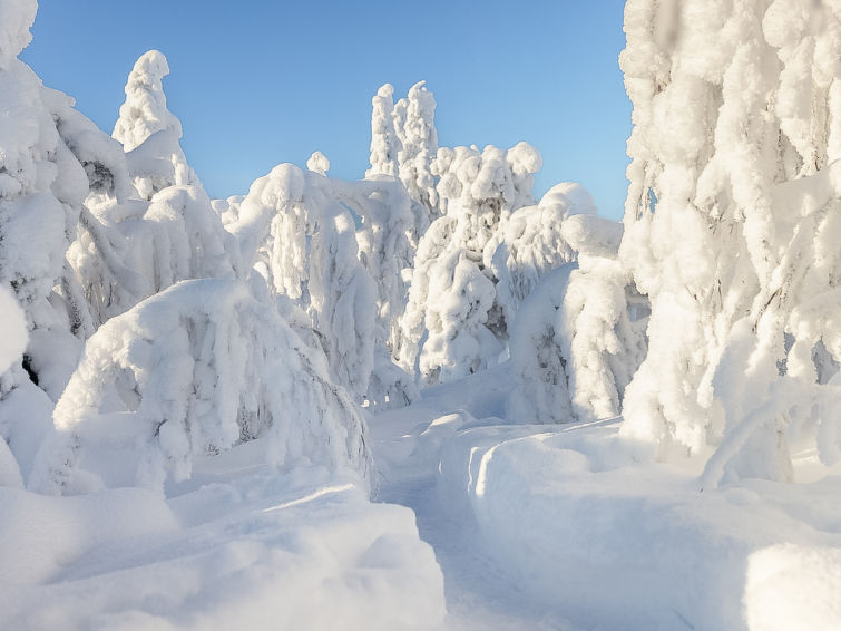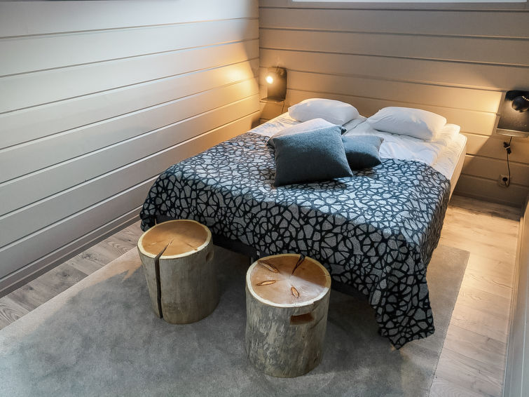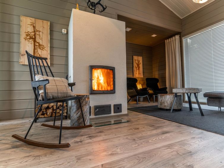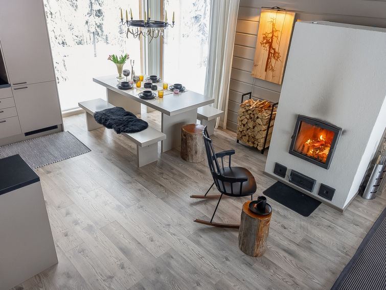Living room/kitchen, three bedrooms, one with double bed and two others with two single beds in each, loft with 2 beds and sofa bed, sauna, washroom, separate WC and covered terrace. Playroom for children in the loft. Car shelter. Loma-Saaga 3 is a high-quality holiday apartment. It is located next to the Iso-Syöte ski slopes and restaurant services. There is also a ski trail near the house (10 m).