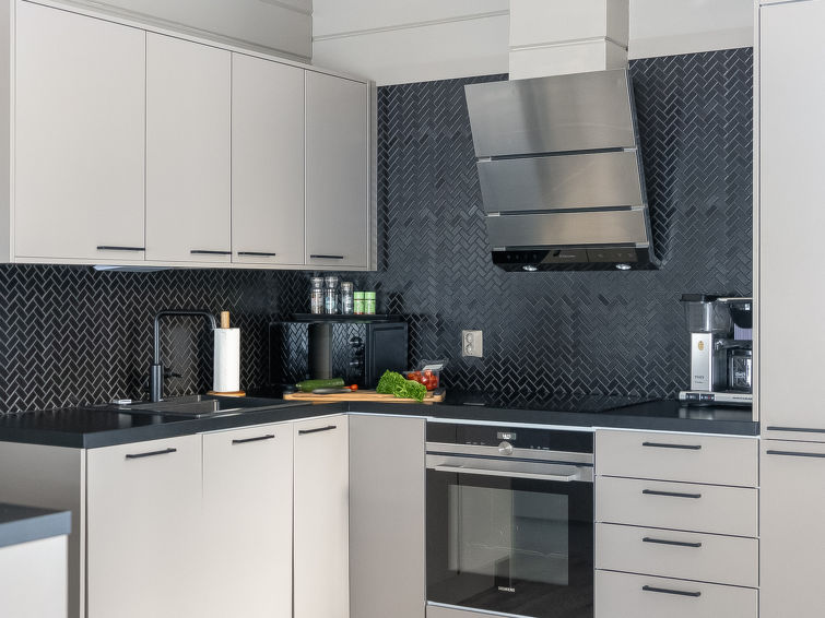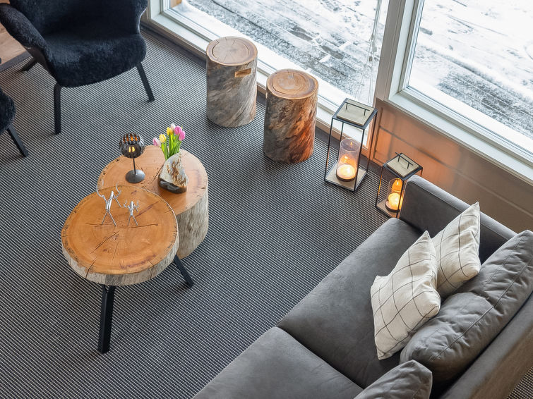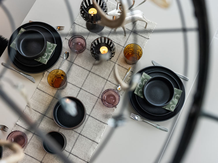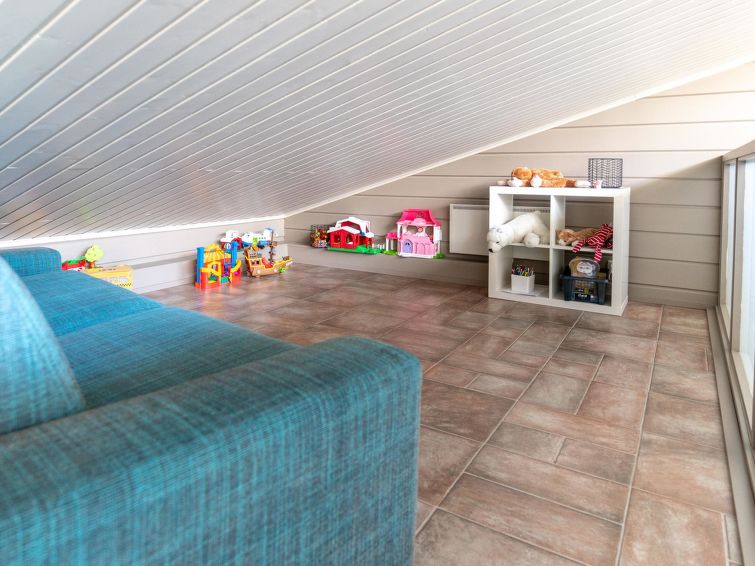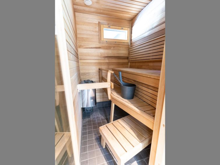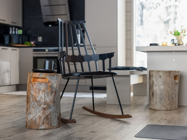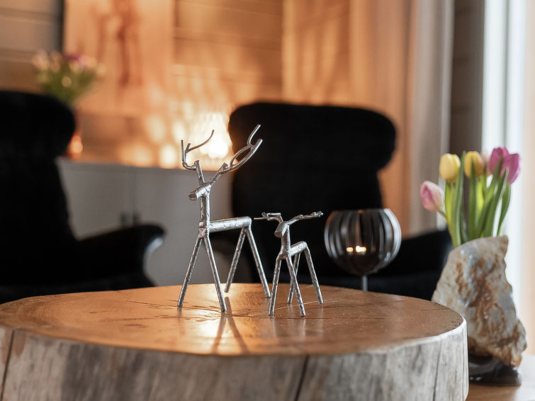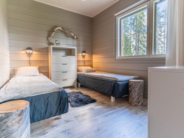 Living room/kitchen, three bedrooms, one with double bed and two others with two single beds in each, loft with 2 beds and sofa bed, sauna, washroom, separate WC and covered terrace. Playroom for children in the loft. Car shelter. Loma-Saaga 3 is a high-quality holiday apartment. It is located next to the Iso-Syöte ski slopes and restaurant services. There is also a ski trail near the house (10 m).
