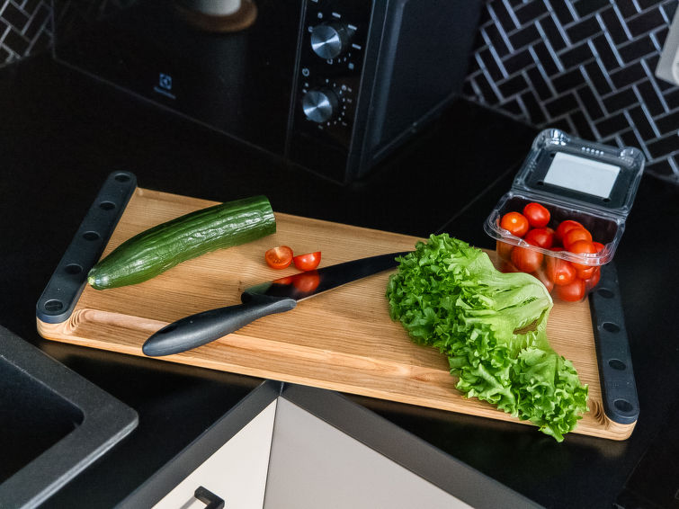 The living room/kitchen is spacious and bright. It is offering plenty of nice space even for a larger group.