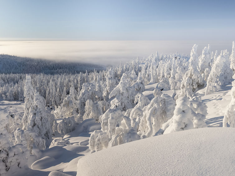 140 km to the northeast from Oulu, in Iso-Syöte tourist center. Ski lifts and ski slopes are near (150 m).