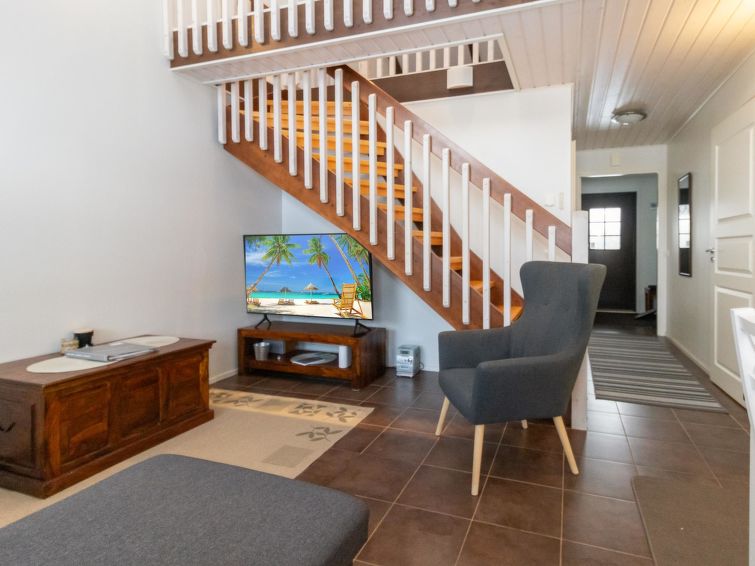 Living room/kitchen, bedroom with double bed. Washing room, WC, sauna (electric stove), hall and from balcony view to the slopes. Upstairs bedroom with 2 beds and a loft with 2 beds, on the upper floor there is another shower and toilet. Ski storage, 2-car plugs for cars. Internet Wifi 5G Clean and good standard Loma Tiki holiday apartment in the heart of the Ski Resort Tahko. The apartment is located on the upper floor in a two-storey building, on the ground floor there is food restaurant Rehti and pizzeria Onni, which are open in the evening until 23:00 (no disco or dance).