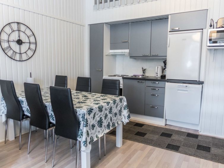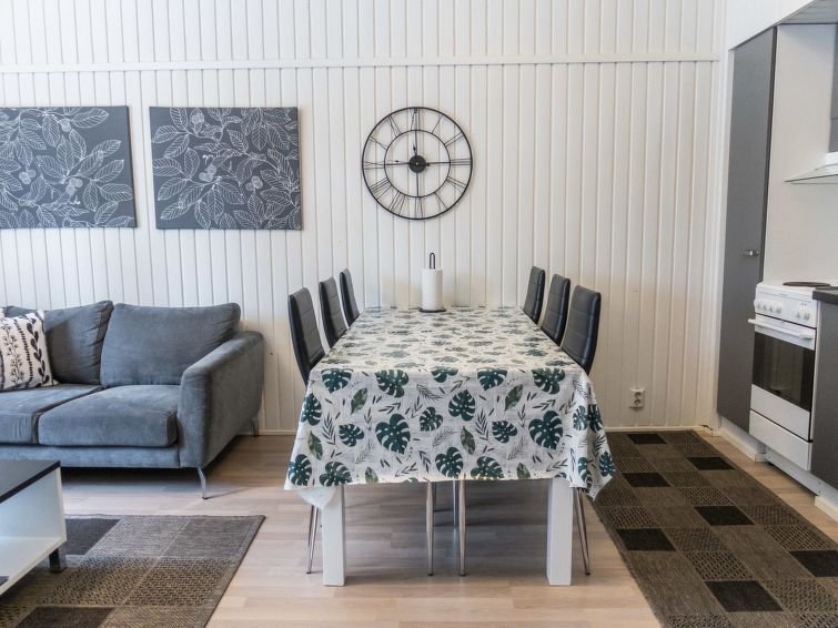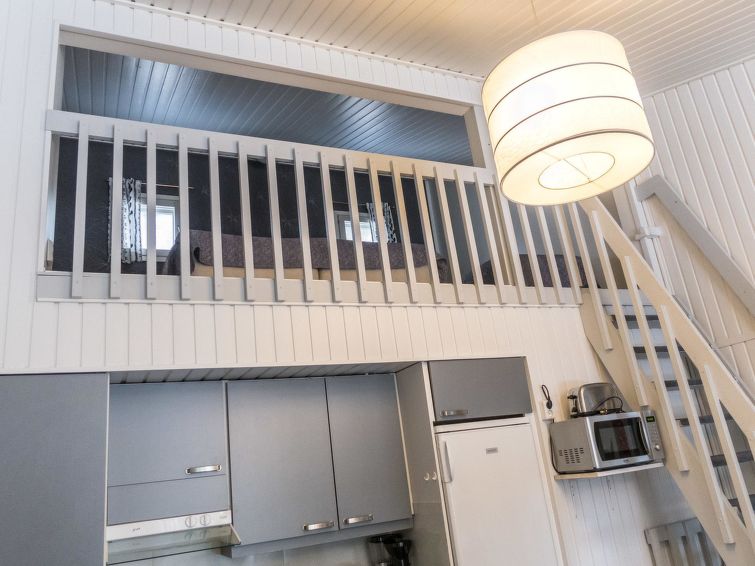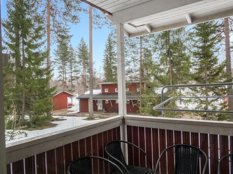 This row house apartment located in Vuokatti ski centre was completed in -87 and removated on -09. Floor area 58 (loft 9 m²). Combined living room & kitchen, bedroom with separate beds for three, sauna (electric heating), washroom / toilet. Loft with separate beds for three. Veranda. Bed and chair for a baby.
