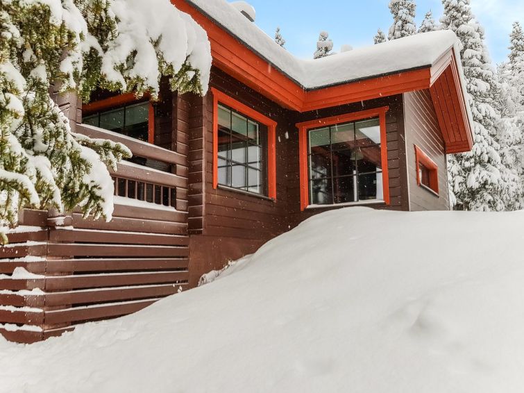 26 km North of Kuusamo, Ruka 5.6 km, lake Rukajärvi 150 m, shallow, sandy beach (shared use with other 2 cottages), rowing boat.