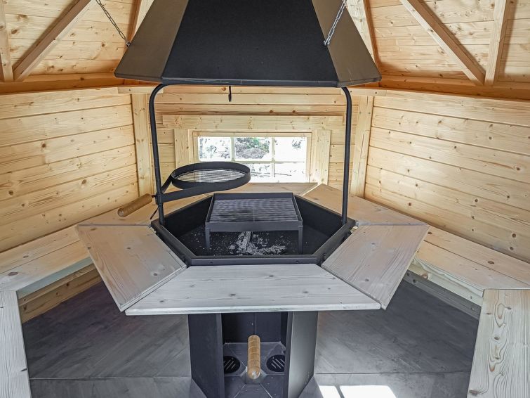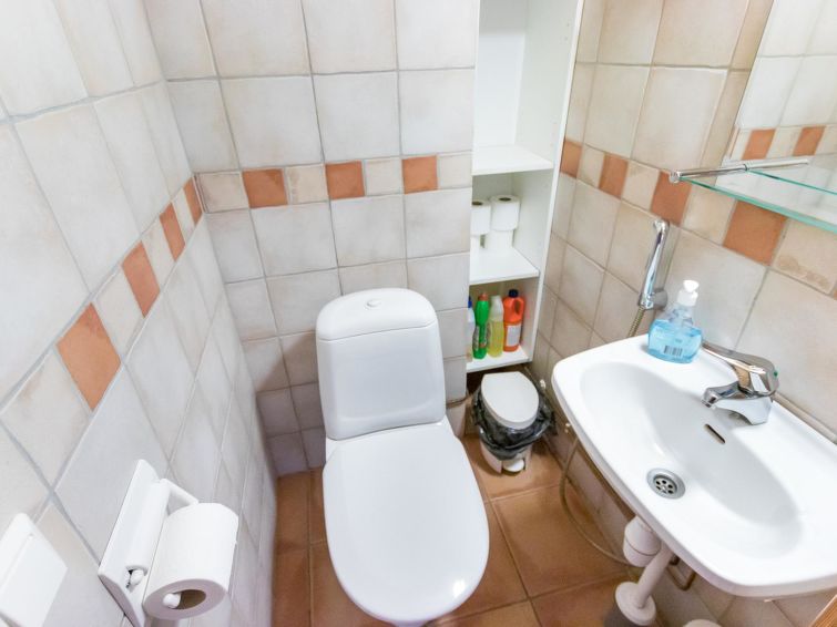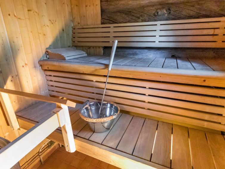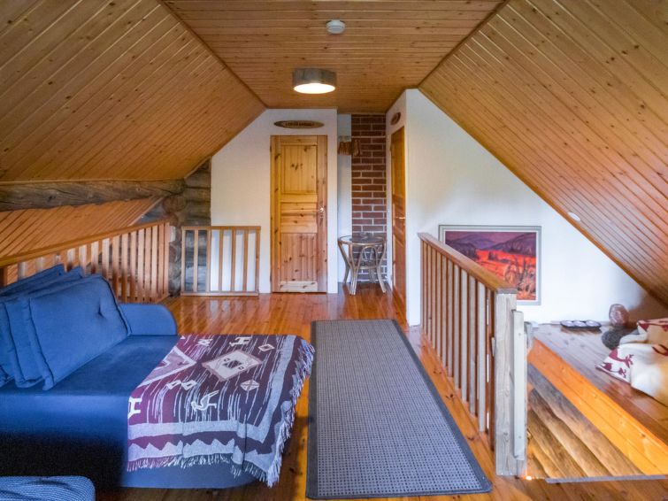 Downstairs living room, kitchen, bathroom (shower + sauna + toilet). The loft (23 m²) has two bedrooms and a living room. One bedroom has a double bed and the other has two single beds. A sofa bed (2 pers.) in the living area of the loft. Loft height 160cm.