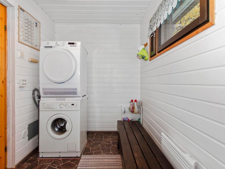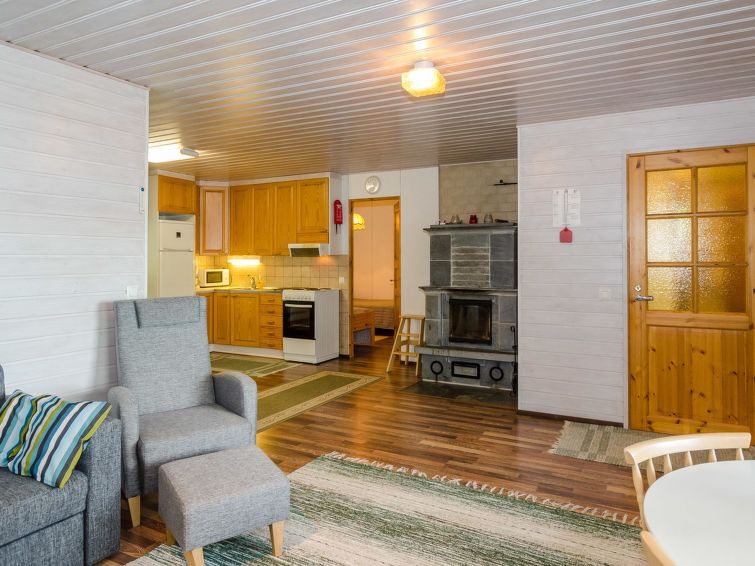 Wooden cabin 1995, surfaces renovated 2013, living-room/kitchen with convertible sofa, bedroom with double bed , bedroom with 2 beds, dressing room, washing room, sauna, open veranda.