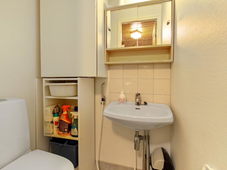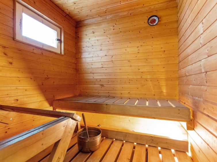 Built in 1991. Bedroom with doublebed, kitchenette and living room, sauna with adjoining washroom and WC, 4 beds on the loft. Firewood included.