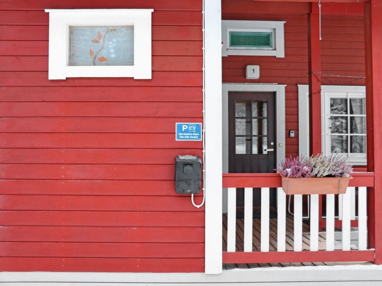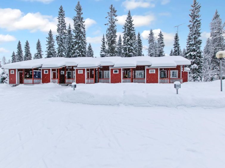 Cosy, well equipped row house close to the hillside. Close to Lake Rakennusjärvi, with angling possibilities at Summer time. Cross-country trail starting from the yard.
