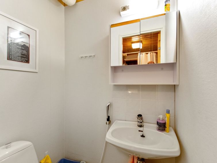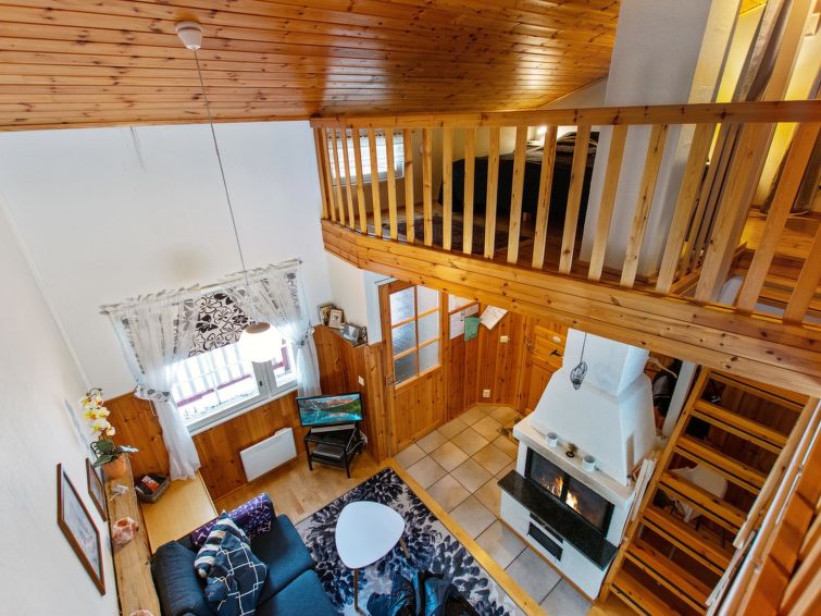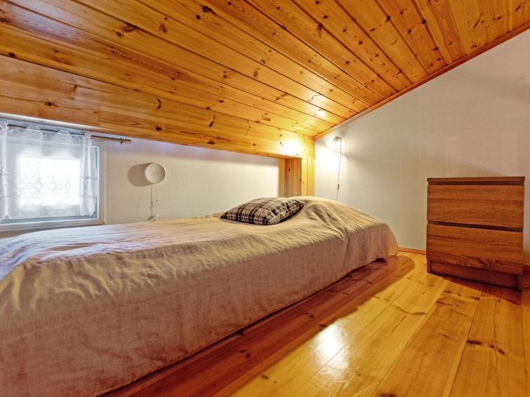 The apartment features a cozy bedroom with a double bed and a living room with a well-equipped kitchen for all your cooking needs. Additionally, there's a sauna, a shower room, and a separate toilet for your convenience. Up on the loft, you'll find two box spring beds and two extra mattresses.