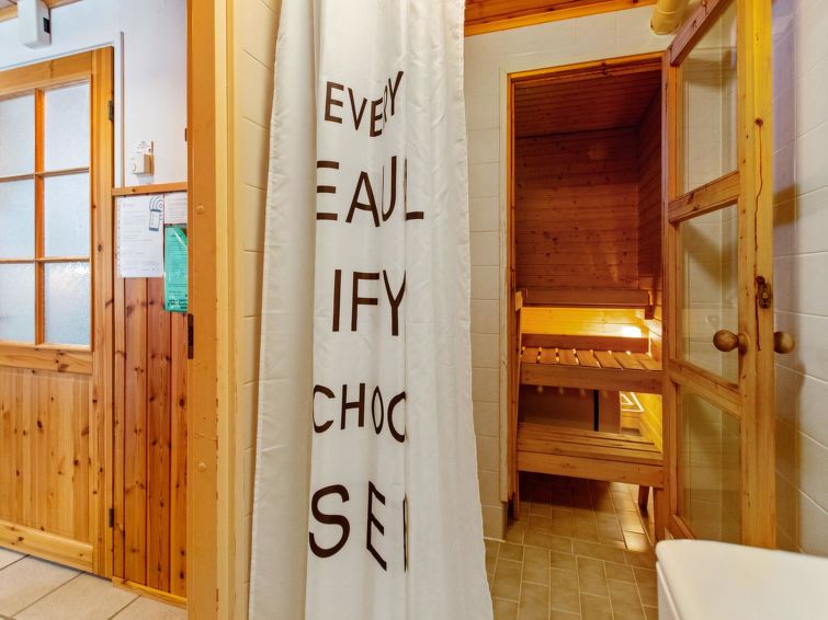 The holiday apartment in the Paljakka Ski Resort is located 2.2 kilometers from the main road by car and 1.1 kilometers by foot. The resort is surrounded by the scenic beauty of the 1-kilometer long and 200-meter wide Rakennusjärvi Lake. The holiday complex was completed in 1991.