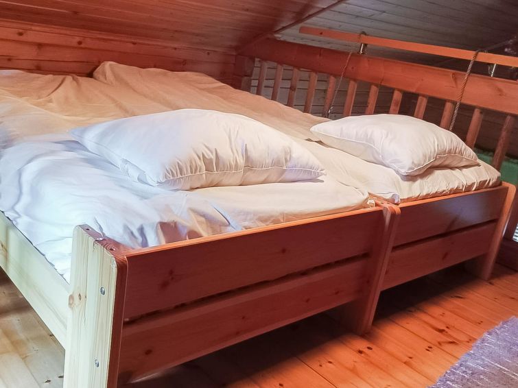 Log cabin 1990, kitchen, sleeping alcove with a double bed (width 160 cm), bedroom with bunk bed, a shower room, a small dressing room, sauna (electric stove).
