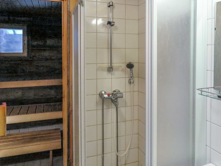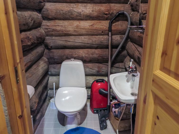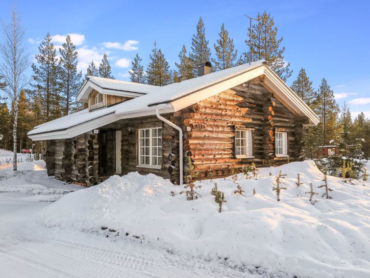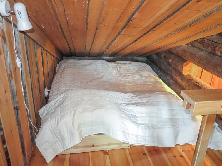 40 km North-East of Kolari, lake Ylläsjärvi 2,5 km, swimming beach 4 km. Log duplex apartment 1988. Livingroom/kitchen, two bedrooms, on with a double bed and on with a bunk bed, loft (17 m², sloping ceilings, highest point 2 m) with 4 mattresses. Electric sauna, shower, separate toilet. Open porch. Homely duplex apartment located in the Ylläsjärvi village Palovaara area. Location ideal for winter sports. Hiking routes nearby. Hotel Ylläsrinne is the closest hotel. No pets allowed. Prices include final cleaning, bed linen available for rent. Charging an electric car is not permitted.
