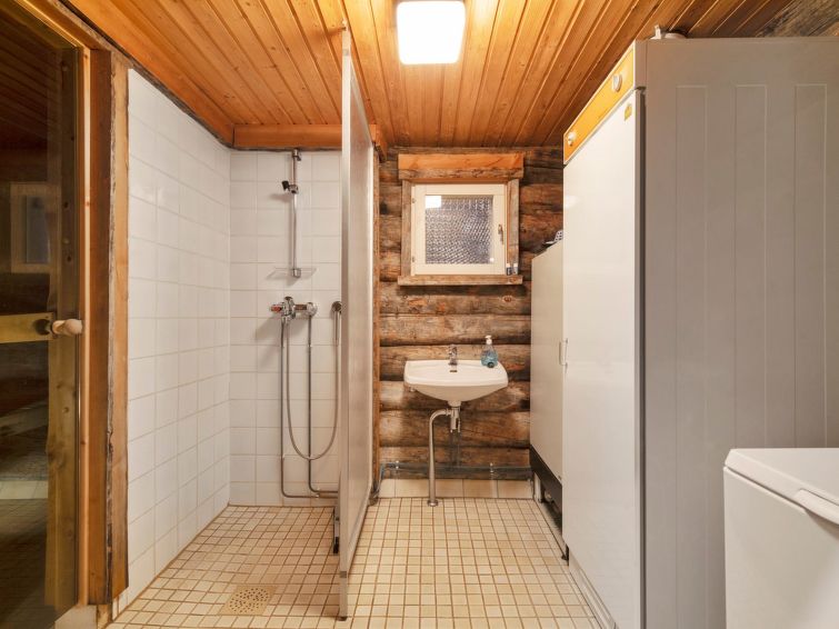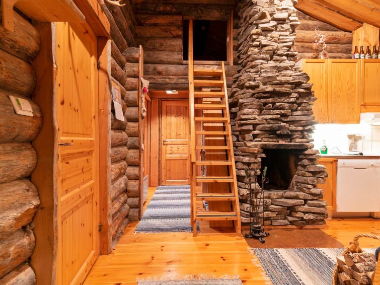 40 km North-East of Kolari, lake Ylläsjärvi 2,5 km, swimming beach 4 km. Log duplex cabin 1988. Livingroom/kitchen , two bedrooms, one with a double bed and one with a bunk bed and one separate bed. Electric sauna, shower, separate toilet. Open porch. Loft is not suitable for accommodation because of lack of emergency exit.