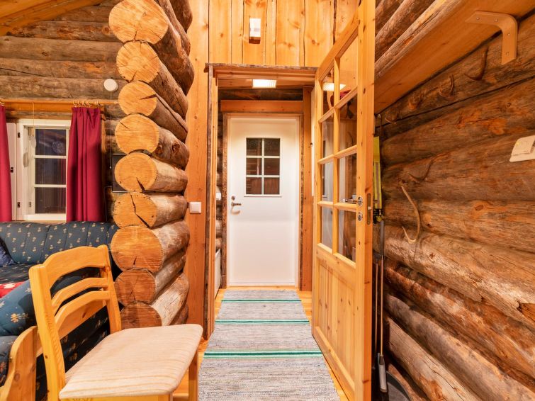 Authentic log duplex cabin located in the Ylläsjärvi village Palovaara area with a direct view of Yllas Mountain. Location ideal for winter sports. Hiking routes nearby. Hotel Ylläsrinne is the closest hotel. No pets allowed. Prices include final cleaning, bed linen available for rent.