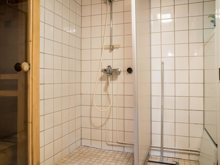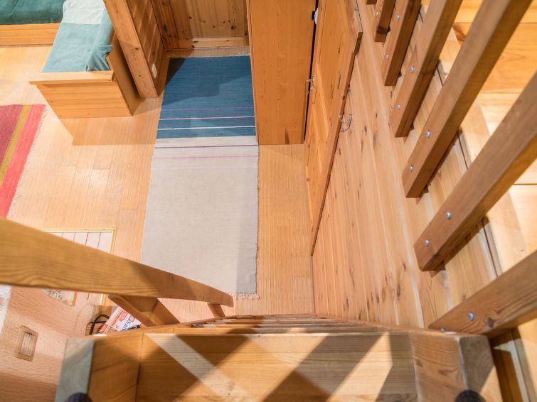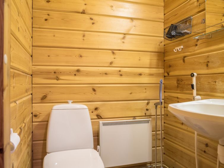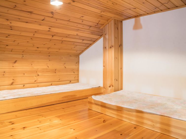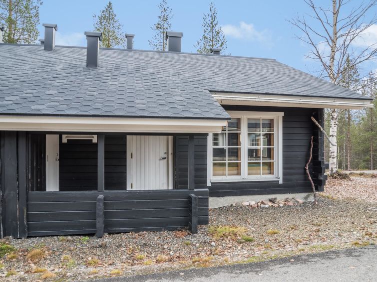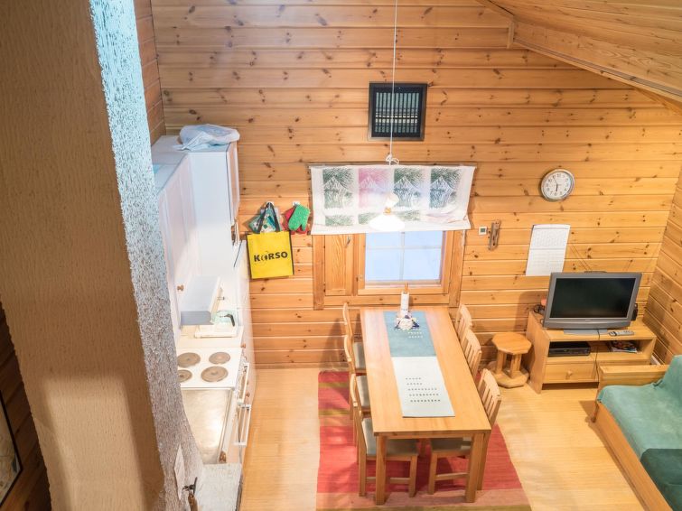 A log duplex apartment located 165 km north of Rovaniemi in Ylläsjärvi village Palovaara area. Built 1989. Distance to the services of Hotel Ylläsrinne is 500 meters. Livingroom/kitchen, two bedrooms (one with a double bed and one with a bunk beds), loft (9 m², steep stairs) with two beds, electric sauna, washing room, terrace, storage room, toilet. Prices include final cleaning. Bed linen available on order. Extra fee for pets.