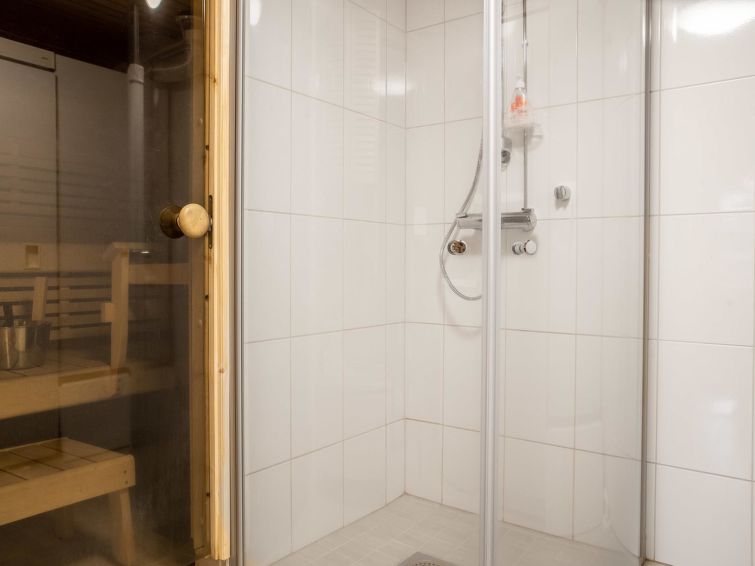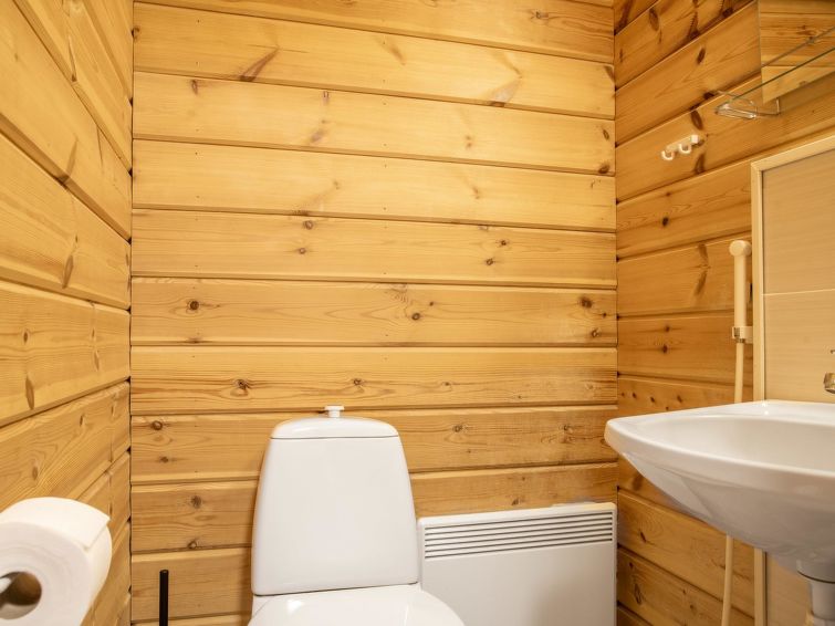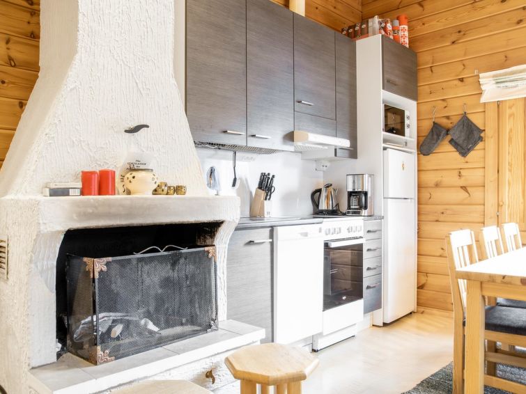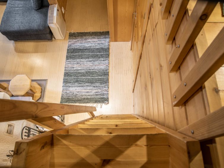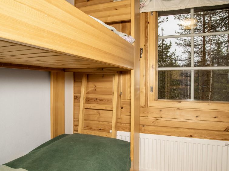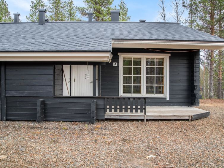 A log duplex apartment located 165 km north of Rovaniemi in Ylläsjärvi village Palovaara area. Built 1989. Distance to the services of Hotel Ylläsrinne is 500 meters. Livingroom/kitchen, two bedrooms (one with a double bed and one with a bunk beds), loft (9 m²) with two mattresses, electric sauna, washing room, terrace, storage room, toilet. Prices include final cleaning. Bed linen available for rent. Pets are not allowed.