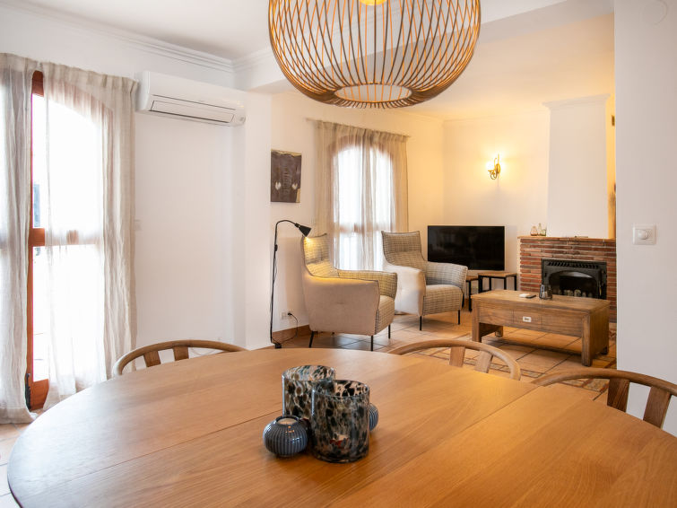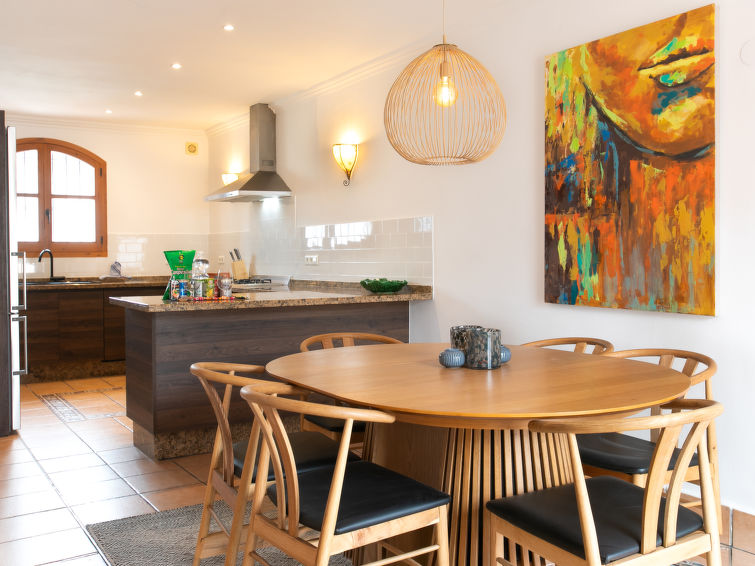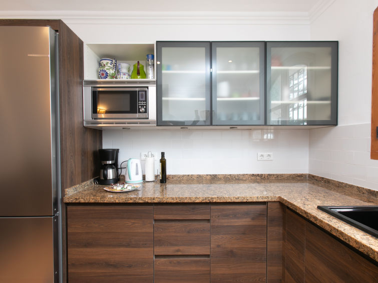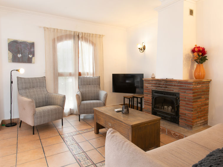 "Los Olivos de Capistrano", 3 rom rekkehus 121 m2. Romlig og lys, praktiskt og komfortabelt møbler: stue/spisestue med, digital TV, air-conditioning og varmluft oppvarming. Utgang til hagen, til sitteplass i hagen. Åpent kjøkken (5 kokeplater, stekeovn, oppvaskmaskin, brødrister, vannkoker, mikrobølgeovn, frys, elektrisk kaffemaskin, kombinert mikrobølgeovn). Utgang til terrassen. Sep. WC. øverste etasje: 1 rom med 2 senger (90 cm lengde 200 cm), bad/dusj/WC, elektrisk oppvarming og vifte. 1 rom med, 1 dobbeltseng (160 cm, lengde 200 cm), bad/dusj/WC, air-conditioning og varmluft oppvarming. Utgang til terrassen. Stor sitteplass i hagen. Terrassemøbler. Meget vakker utsikt av havet, fjellene og svømmebassenget. Fasiliteter: vaskemaskin, strykejern, høy barnestol barneseng, hårføner. Internett (DSL/LAN, gratis). VFT/MA/71348