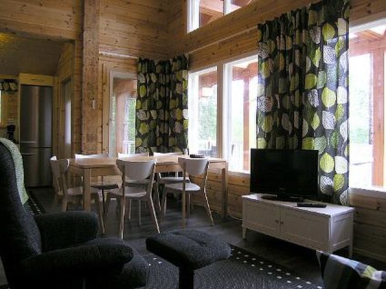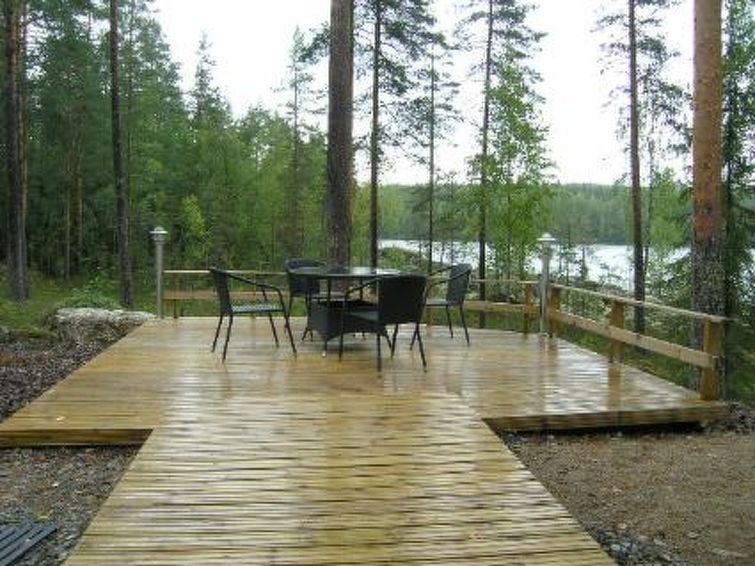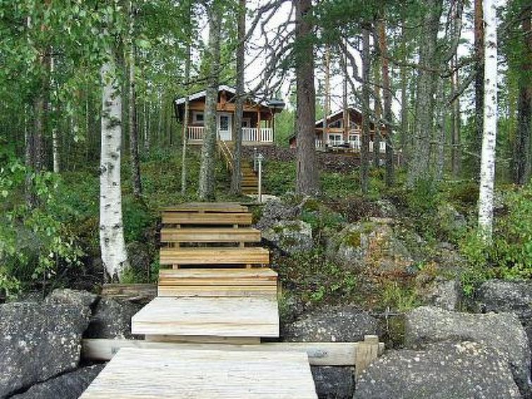 Log villa 2012, kitchen-living room, two bedrooms each with 2 beds, loft with sofa bed for 2, utility and shower room with two showers, spacious terrace, woodshed and lakeside sauna on the shore.
