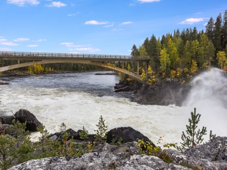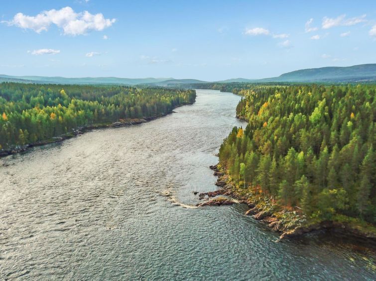 150 km north-west of Tornio, on Swedish side, River Kalixjoki 150 m, Jockfall waterfall 200 m, public shore, public swimming shore 300 m.