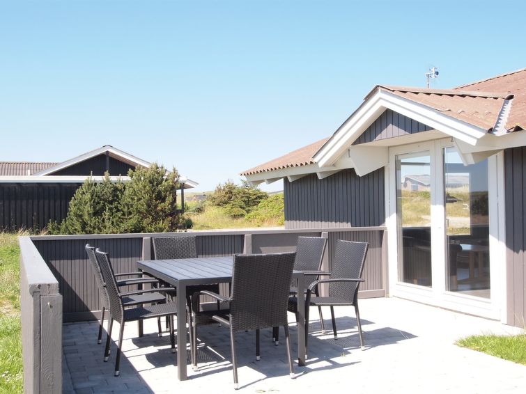 "Lowe" - from the sea in Western Jutland", 3 rom hus 81 m2. Passer for 6 voksne. Stue med, TV. 1 rom med, 1 dobbeltseng. 1 rom med 2 senger. 1 rom med, 1 dobbeltseng. Kjøkken (stekeovn, oppvaskmaskin, 4 keramiske kokeplater, frys). Dusj/WC. Terrasse 8 m2, dekt. Fasiliteter: Internett (trådløs LAN [WLAN]). Vennligst merk: røykfri bolig. Max kjæledyr / hund tillatt 1 kjæledyr / hund tillatt.