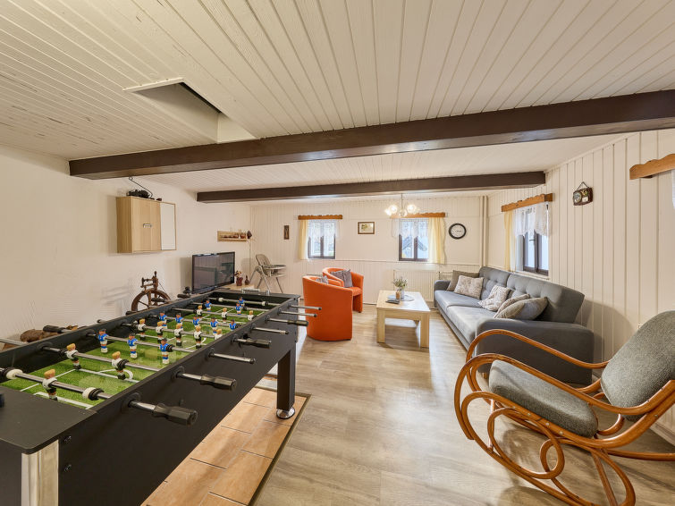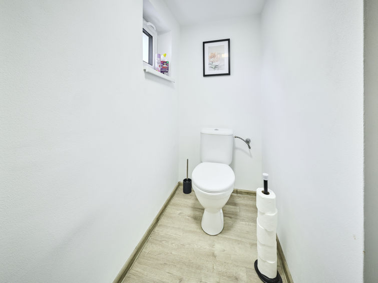 3 rom hus 80 m2 på 2 etasjer. Praktiskt møbler: stue med, vedovn og satelit-TV. Lite kjøkken (ovn, 4 keramiske kokeplater, mikrobølgeovn, elektrisk kaffemaskin) med, spisebord. Bad, sep. WC. øverste etasje: gjennomgangsrom med skråtak med 1 seng og 1 dobbeltseng. 1 rom med skråtak med 3 senger. Fasiliteter: høy barnestol barneseng. Internett (trådløs LAN [WLAN], gratis). Små kjæledyr / små hunder tillatt 2 små kjæledyr / små hunder tillatt.