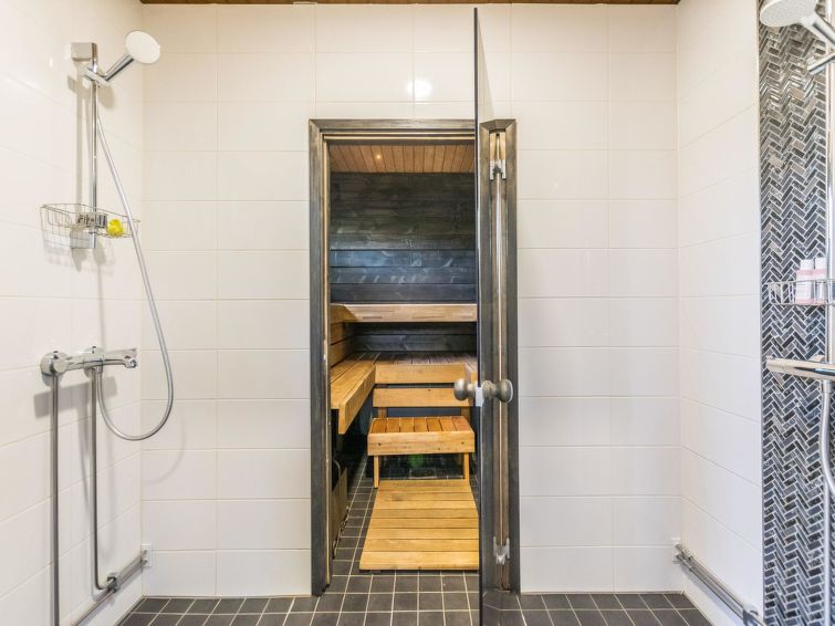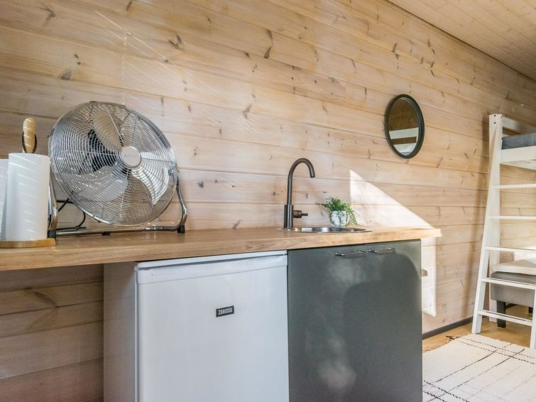 The lakeside sauna has a separate room with its own water point and refrigerator. In the room, there is a bunk bed. The lower bed is 160 x 200 cm and the upper bed is 140 x 200 cm. The sauna has a wood-burning sauna stove, and from the sauna window, there is a view of the beach. The terrace is equipped with outdoor furniture and a wood-heated hot tub available for an extra fee. The partly grassy and gravel-paved yard is flat. The yard receives ample sunshine. Lake Pyhäjärvi is good for fishing. It's possible to launch your own boat into the water using a trailer from the cabin's shore.