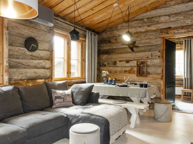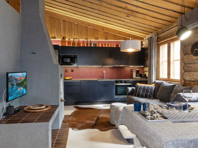The apartment comfortably accommodates up to 7 people. Atmospheric living room with well-equipped open kitchen are a perfect place to spend some time after a busy day. Kelorakka where the apartment is located, is only a 10-minute walk from the Levi tourist center. The nearest ski and outdoor trails can be reached almost from the stairs. Also, ski slopes (Eturinteet) are within walking distance. There is also a ski bus stop next to road Rakkavaarantie. Ski bus connection is an easy way to get around the Levi area.