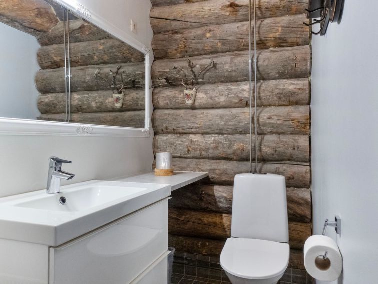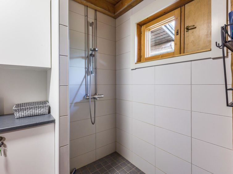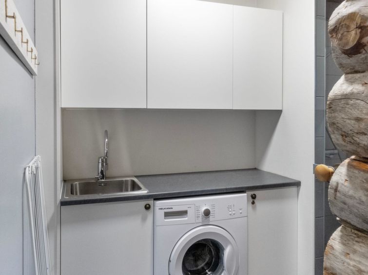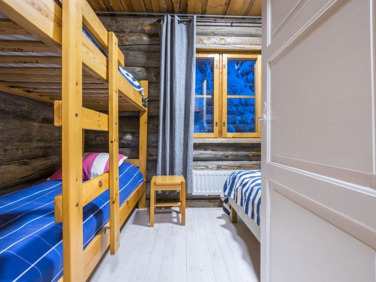 Separate spacious WC, utility room and cooling room in connection with sauna offer nice amenities for your holiday. Lumiankelo offers a wonderful setting for successful fell holiday! One-level apartment in a semi-detached house is a practical selection for both - families and groups of friends. Two bedrooms both have double beds (140 cm). In addition there is a bunk bed in other bedroom and a single bed in other bedroom. The living room and open kitchen are spacious and in addition the apartment has a separate WC, cooling room, utility room, shower and sauna. There is also spacious outdoor storage next to the front door, where you can safely store your hobby equipment during your stay. There are hair dryer and also potty in the cottage.