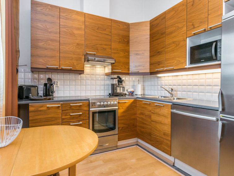 The apartment has a complete set of tableware, coffee maker, an kettle, a toaster, an electric mixer, a hairdryer and an iron.