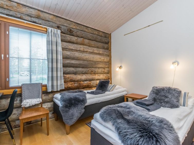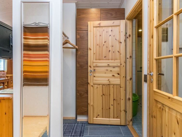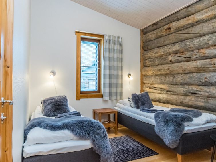 Semidetached apartment Lumikelo B4 offers cosy cabin accommodation in the centre of Saariselkä. The spacious apartment combines traditional silverlog cabin style with modern comforts.