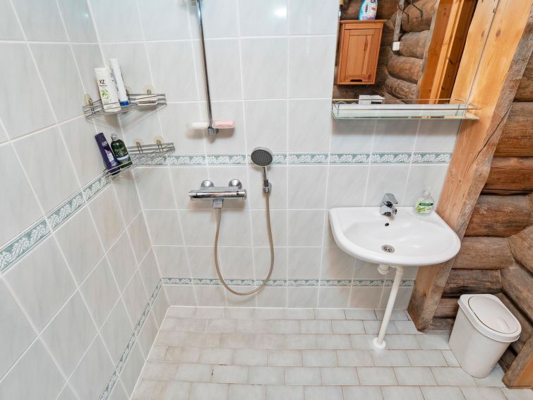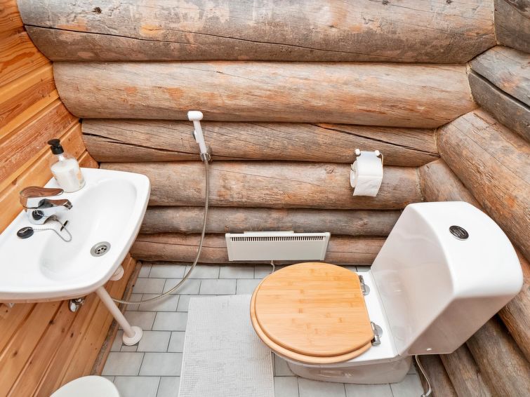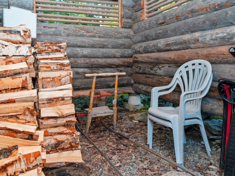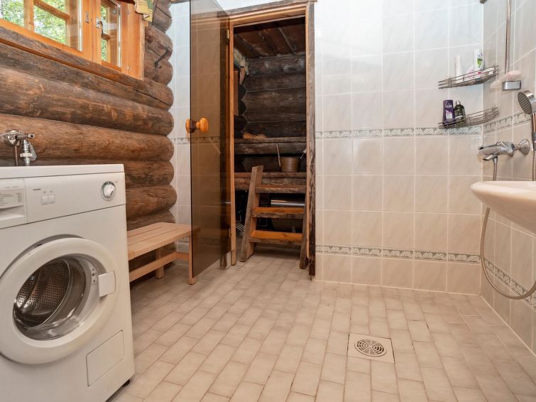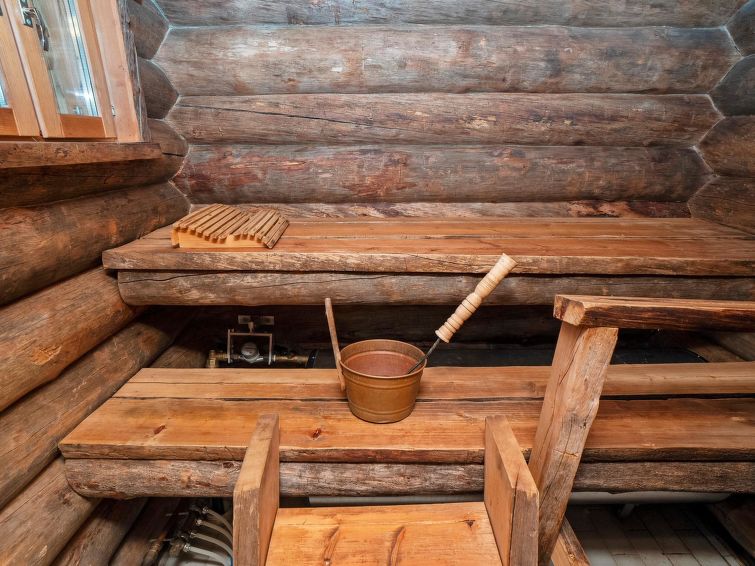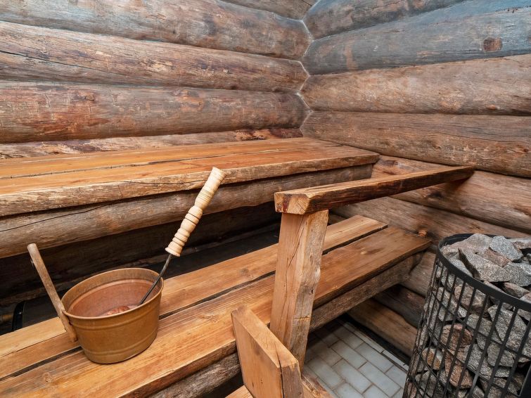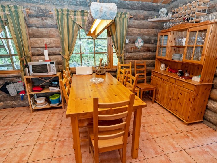 25 km north of Kuusamo, Vuosseli (Eastern Ruka, Itä-Ruka) 200 m. High level cottage, built in 2000. Bedroom1: doublebed, bedroom2: 2 wide (120 cm) beds, low loft1: 3 beds, low loft2: 1 bed. Combined kitchen/living room, electric sauna. Downstairs 80 m² + lofts 20 m². densely built log cottage area in Saarua-Aho, on Saaruantie road. Nearest ski lift RukaExpress, nearest restaurants Ski Bistro and Camp Kitchen & Bar.