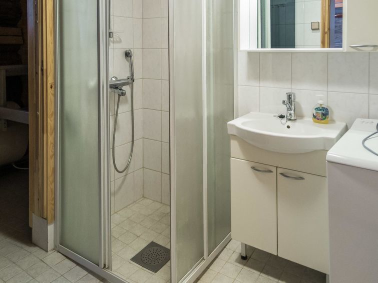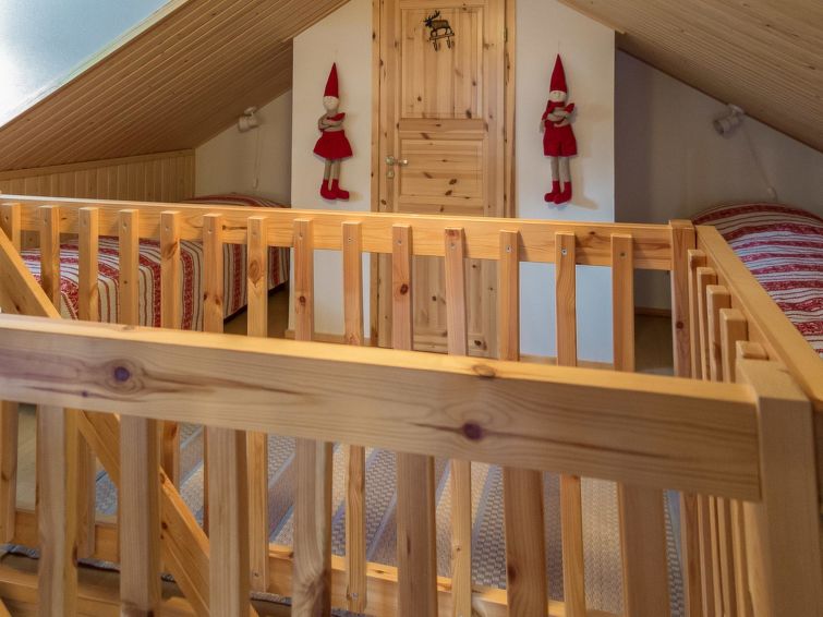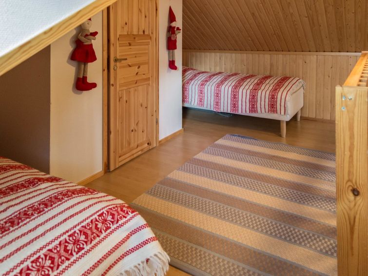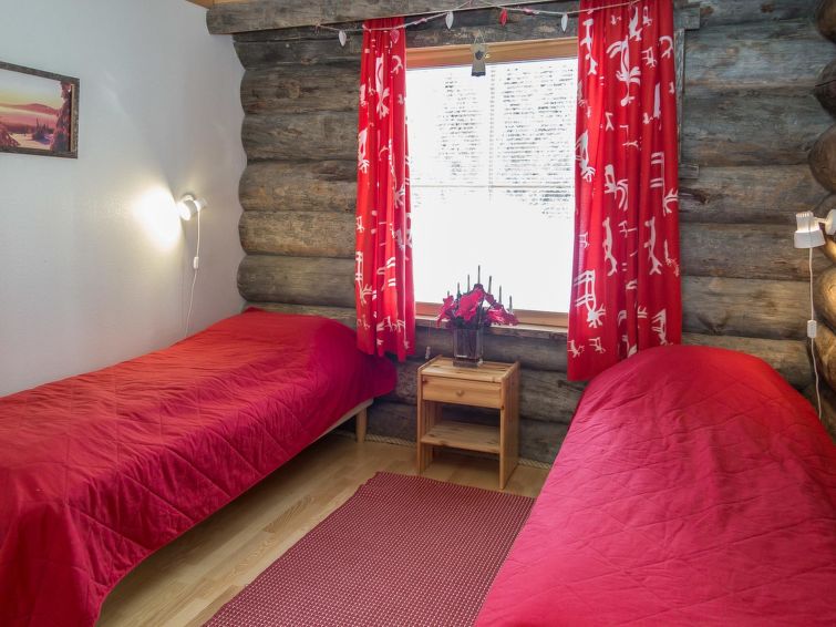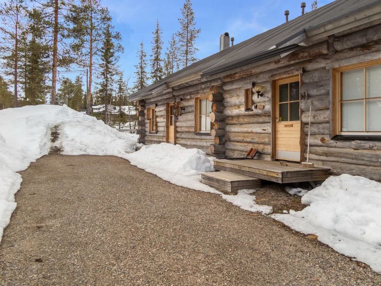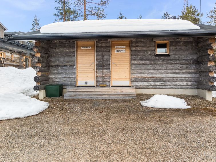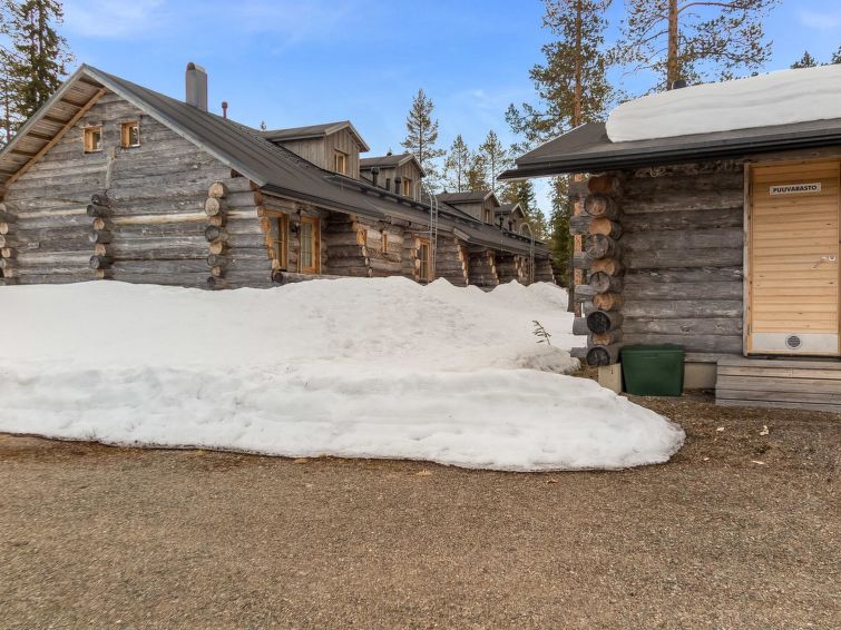40 km to the north from Kolari, lake Äkäslompolojärvi 1 km, swimming beach 1,5 km, illuminated ski trail 50 m, ski slopes 2,5 km. Gable apartment in a wooden (kelo log) row house, built in 2006. On the ground floor living room/kitchen, two bedrooms, both with two single beds, washroom and sauna, separate WC, terrace. Three single beds and WC in the loft. Cozy kelo log apartment in a row house, located in Äkäslompolo village center. The apartment is located right next all the services of Äkäslompolo village, easy location for people who are travelling without a car. Ski maintenance room for shared use. Pets are not allowed in the apartment. Final cleaning is included in the price, bed linen can be rented.