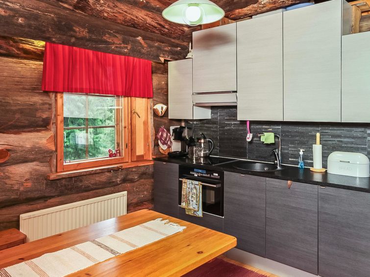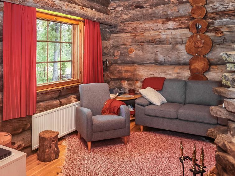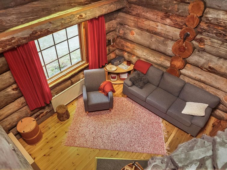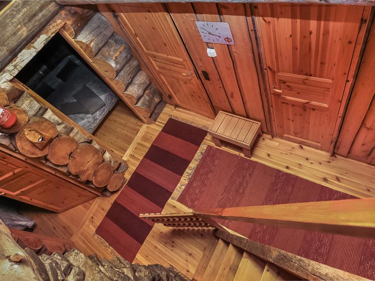 Open kitchen, 2 bedrooms each with 2 beds (second bedroom beds can also make my double bed), sauna (electric stove), bathroom/wc, separate wc, loft (floor area of 30 m², steep staircase) 2 beds and 2 mattresses. The apartment has also a gas grill (outdoor use). Air-source heat pump. Log cabin in a quiet area, however close to Luosto services. Drying cabinet is in the storage room. Program services and restaurants 1.5 - 2.0 km. Amethyst spa 1.5 km. Ametistikaivos 5 km.