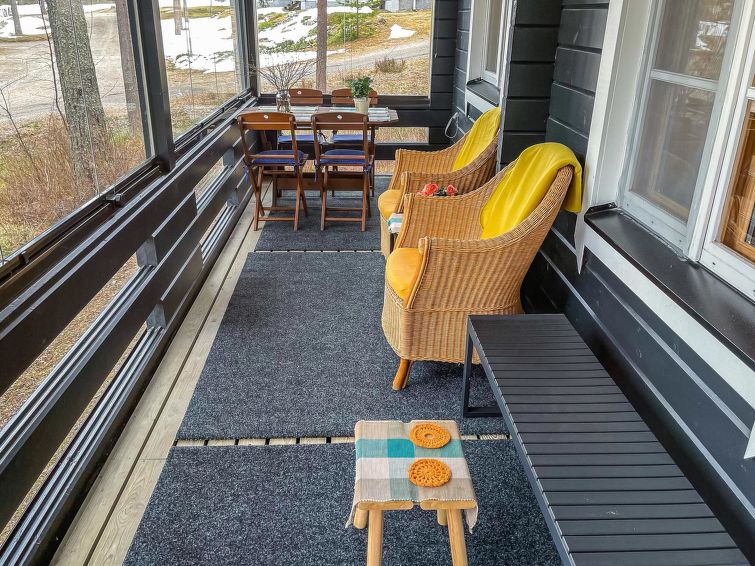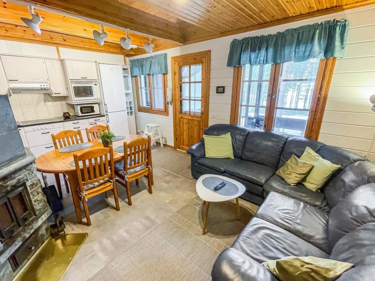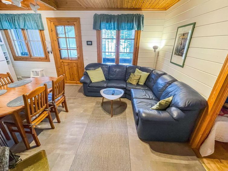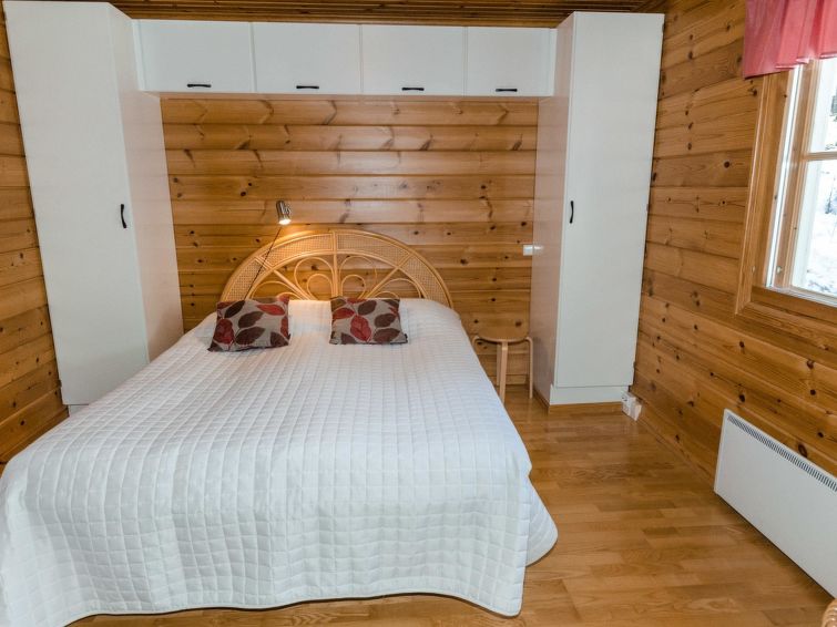 77 north of Joensuu, Lake Pielinen 40 m (871,2 km²), common beach with shallow, partly stony bottom. Log/wooden double house flat 1991, kitchen, One bedroom with double bed and one bedroom with 2 beds, sleeping gallery with 4 beds, washroom, sauna (elec. stove), terrace. Log/wooden double house apartment by the Lake Pielinen in Loma-Koli cottage area. Also a common beach by pond Käränkälampi, distance 250 m. The terrace offers a view on Lake Pielinen. Wi-Fi 4 G. The double house flat is suitable for downhill and cross-country skiers; Ukko-Koli slopes 9 km.