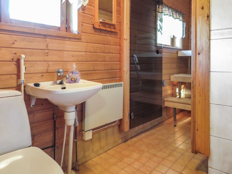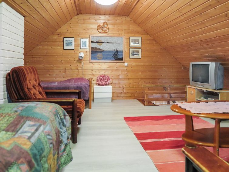 Log cottage, built in 1992. Living room - kitchen sofa bed, upstairs 3 single beds, sauna (electric stove), shower room / toilet, covered porch and balcony. Fire place in the yard.
