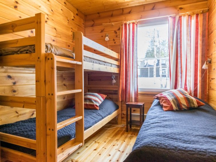 25km north of Kuusamo, Ruka 2.7km, Lake Kesäjärvi 500m. Board-built cottage, built in 2008. Downstairs: bedroom 1: with 2 beds, bedroom 2 with 2 beds, bedroom 3 with 1 bed + bunk bed, livingroom, kitchen, bathroom (2 showers), wood-heated sauna and 2 toilets (other with a shower). Upstairs: 4 beds and toilet. There is also 1 extra bed. Upstairs + downstairs 145 m². High quality Holiday house near Kesäjärvi lake.