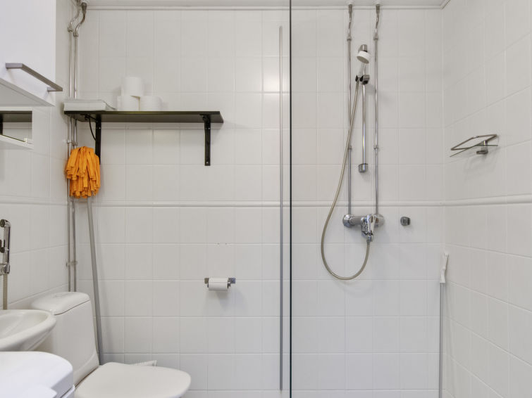 The bright apartment Luulampi F 11 is located on the second floor of a detached house in the centre of Saariselkä, offering a good location close to services.