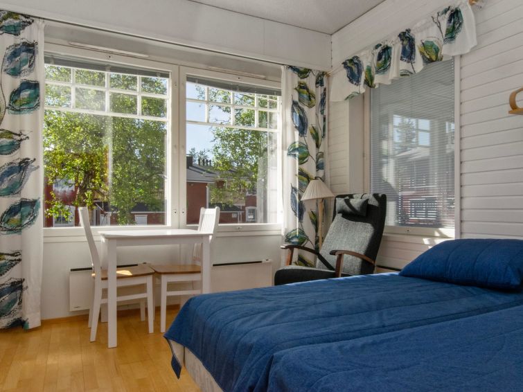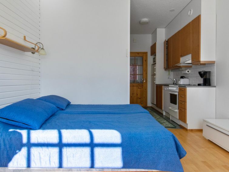 The freshly decorated street-level studio apartment Luulampi F5 is located at the north end of a 2-storey house in the centre of Saariselkä, offering a good location close to services.
