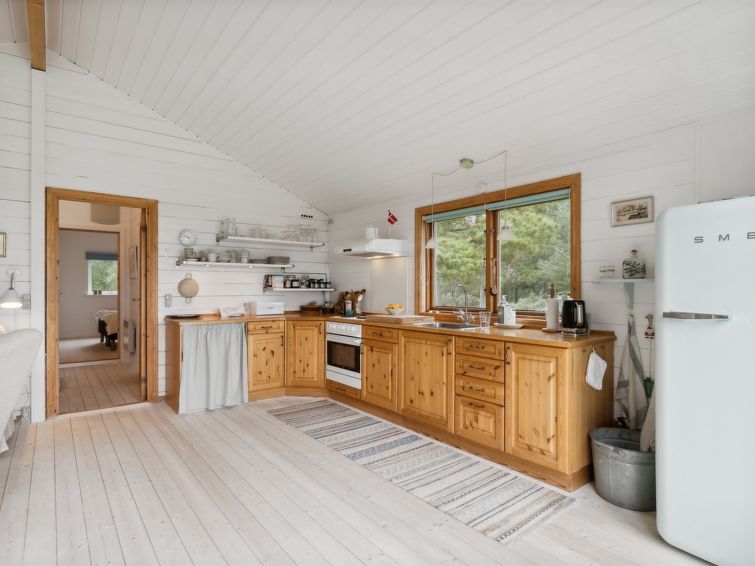 Enmannsbolig, bygget i 2008. 3 km fra sjøen. Privat: uberørt tomt 5'000 m2. Utendørs dusj, terrasse (15 m2), grill. I huset: vaskemaskin. Parkering ved hbrukt. Daglivarehandel 3 km. Golfbane 2.5 km. Eieren godtar ikke noen ungdomsgrupper.