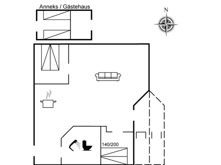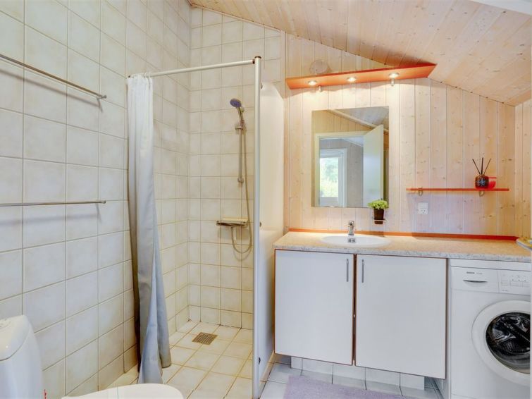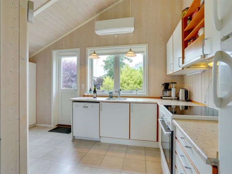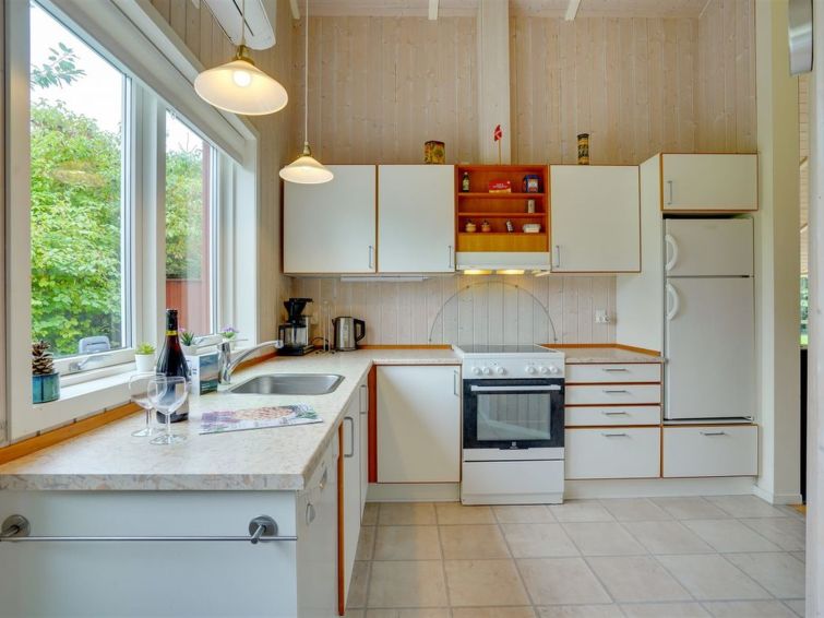 "Lyra" - 800m from the sea in Lolland, Falster and Mon", 3 rom hus 71 m2. Passer for 6 voksne. Stue med, TV og radio. 1 rom med, 1 dobbeltseng. Studio 1 rom med med 2 senger og 1 dobbeltseng. Kjøkken (stekeovn, oppvaskmaskin, 4 keramiske kokeplater, mikrobølgeovn, frys). Dusj/WC. Terrasse 10 m2, dekt. Fasiliteter: Internett (trådløs LAN [WLAN]). Vennligst merk: røykfri bolig.