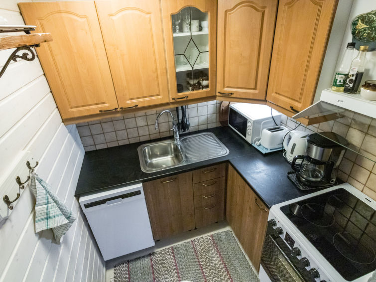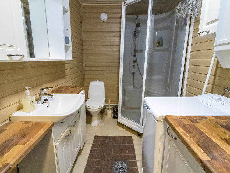 Separate sauna 20 m, steam room (wood-burning stove and hot water tank on stove) and living room. Sauna with electric light and during summer time running water, during winter you have to carry water to sauna from the main building with buckets.